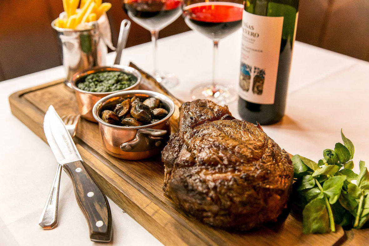 RESTAURANT OFFER: Guests can tuck into the monstrous 1kg tomahawk steak – a juicy challenge for even the most committed of carnivores – served with French fries, creamed spinach, mushrooms and a bottle of Viñas del Vero, Cabernet/Merlot for just £95 – perfect for two to share.