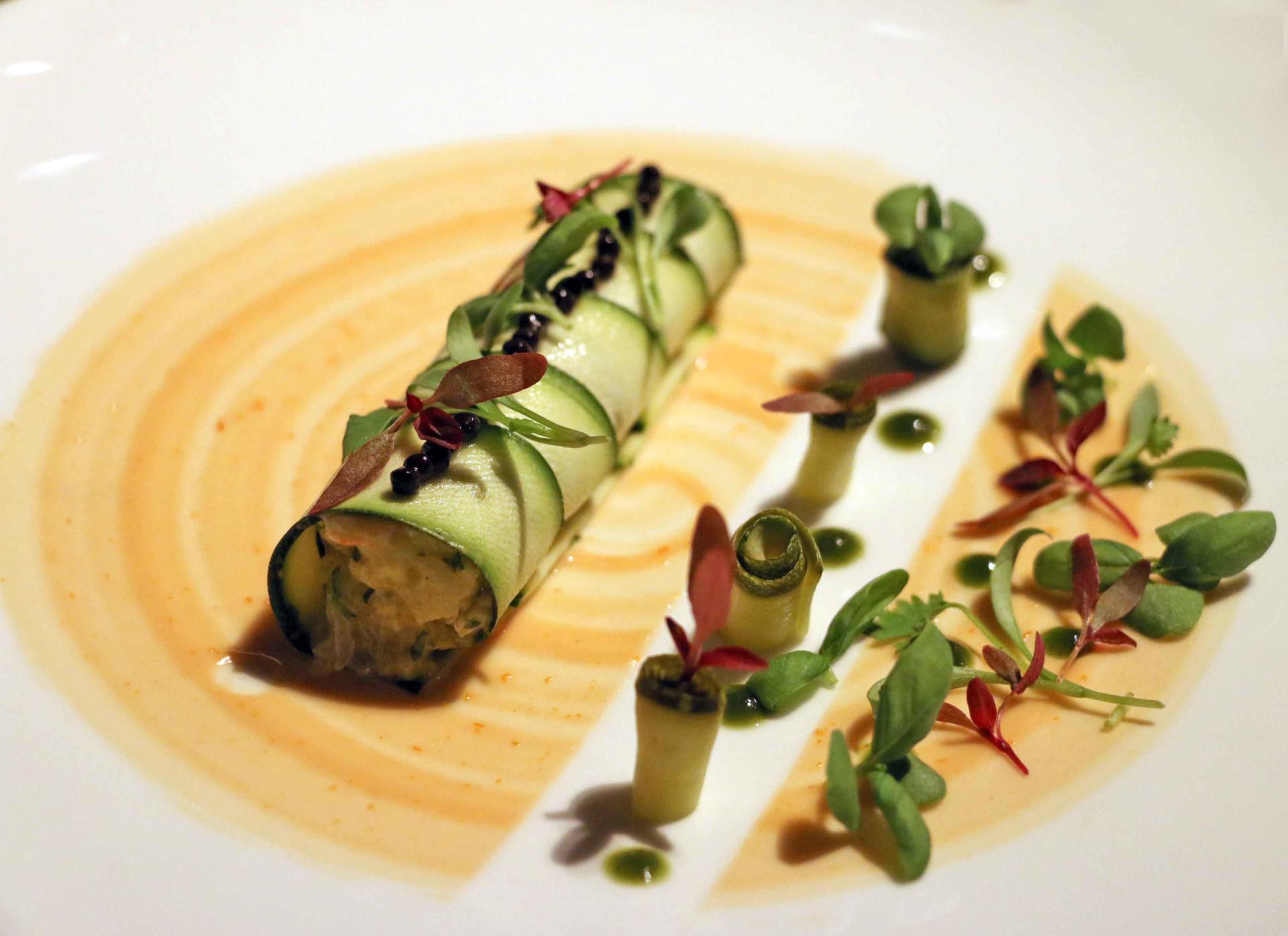 I’m almost certain we managed to work our way through most of the menu, though I’m so glad we did because it meant we had a chance to really fall in love with what is Marylebone’s best restaurant. Another flawless dish was this picture perfect seafood creation. Thinly shaved courgettes were spiralled to encase a Scottish langoustine tartare, dollops of coriander oil, pearls of caviar and an artfully smeared classic cocktail sauce. It tasted just as good as it looked and more.