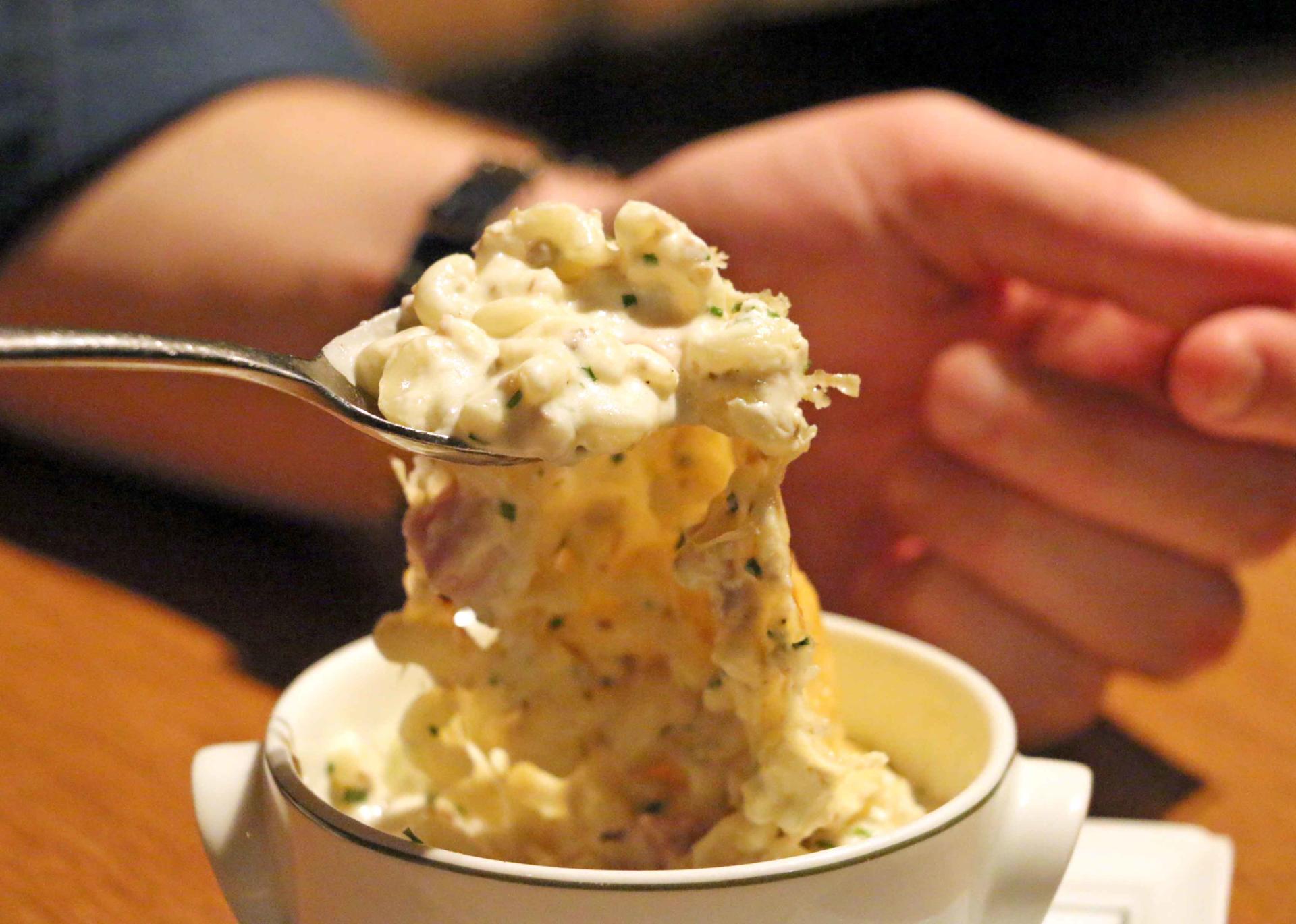 Admittedly our next dish looked a little messy and could do with some rethinking, but flavour wise it was my favourite dish of all. Succulent farm yellow chicken with a mushroom purée, Comté cheese and stuffed morels, the latter having just come into season. If there wasn’t already enough richness and cheese on the plate we ordered a very stringy side of macaroni cheese – made up of jambon de Paris, Emmental and mushrooms. Another must order.