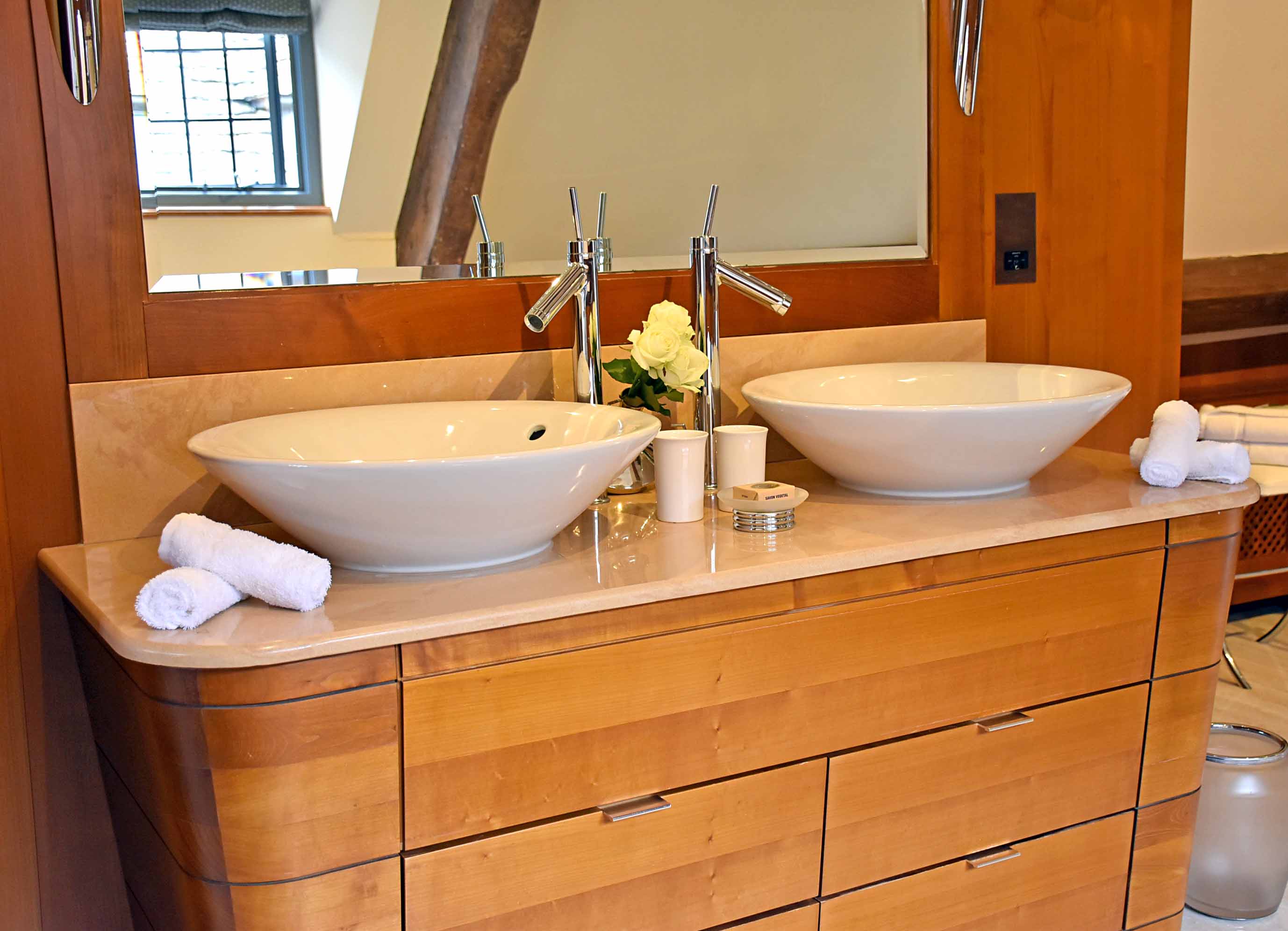 That bathrooms is lovely! I love the gorgeous rustic wooden look to the place.