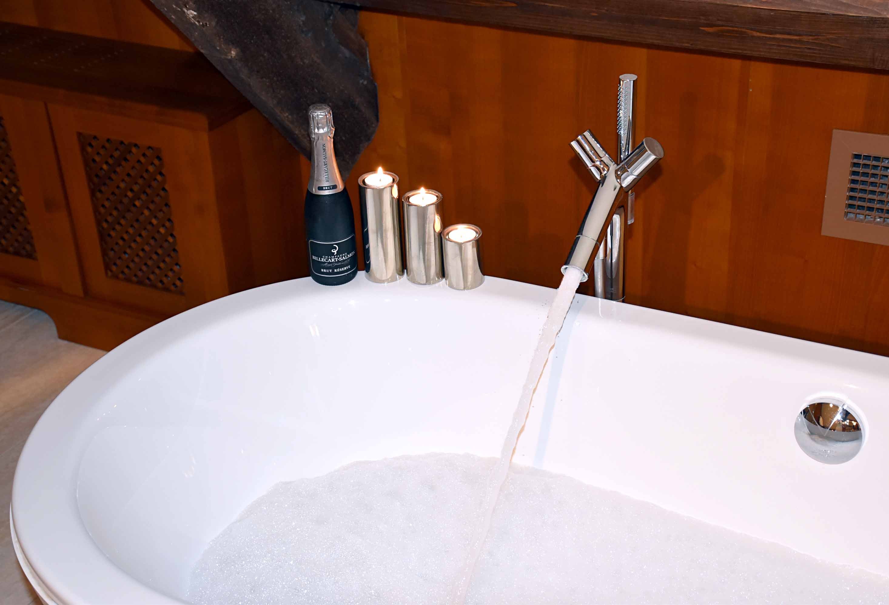 It wasn’t until later that evening we even realised our room had two bathrooms. One is hidden and located at the end of the bedroom up a few stairs and is equipped with just a sink basin and toilet – perfect for during the night when walking through a pitch black room can be quite traitorous. The main spectacle was of course the master bathroom. A bathroom of dreams if you will. Huge in size, double bowl sink unit, shower, toilet and a stand alone bath designed by Philippe Stark. Champagne and candles, obviously.