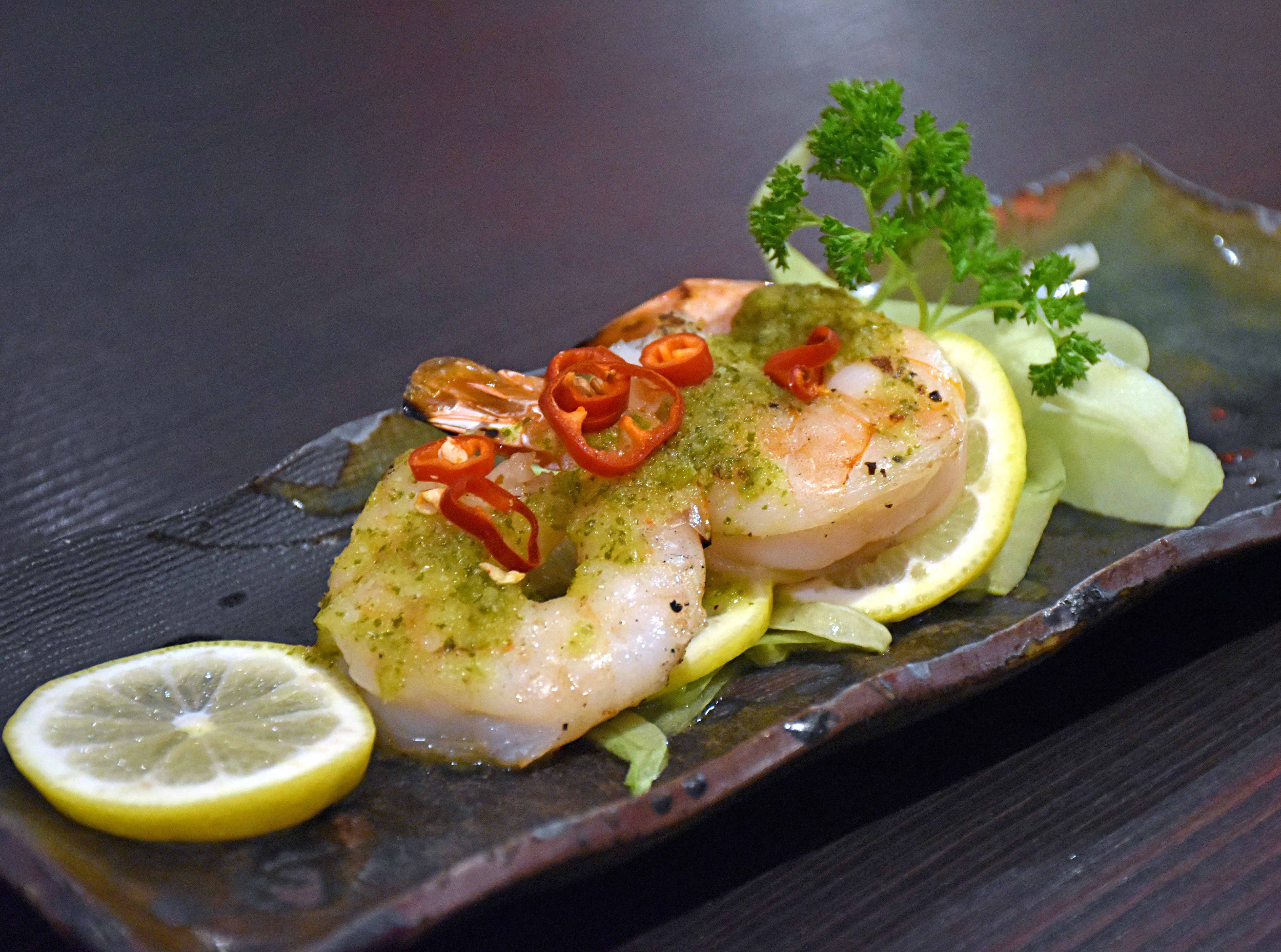 My favourite dish from our evening was one of the most simplest, grilled king prawns with a chilli and lime truffle sauce.The prawns were very well cooked, the seasoning and flavours were just the right amount and the chilli added a much welcomed bit of heat. The classic Thai salad of green mango tossed in lime and chilli dressing was a lovely accompaniment too.