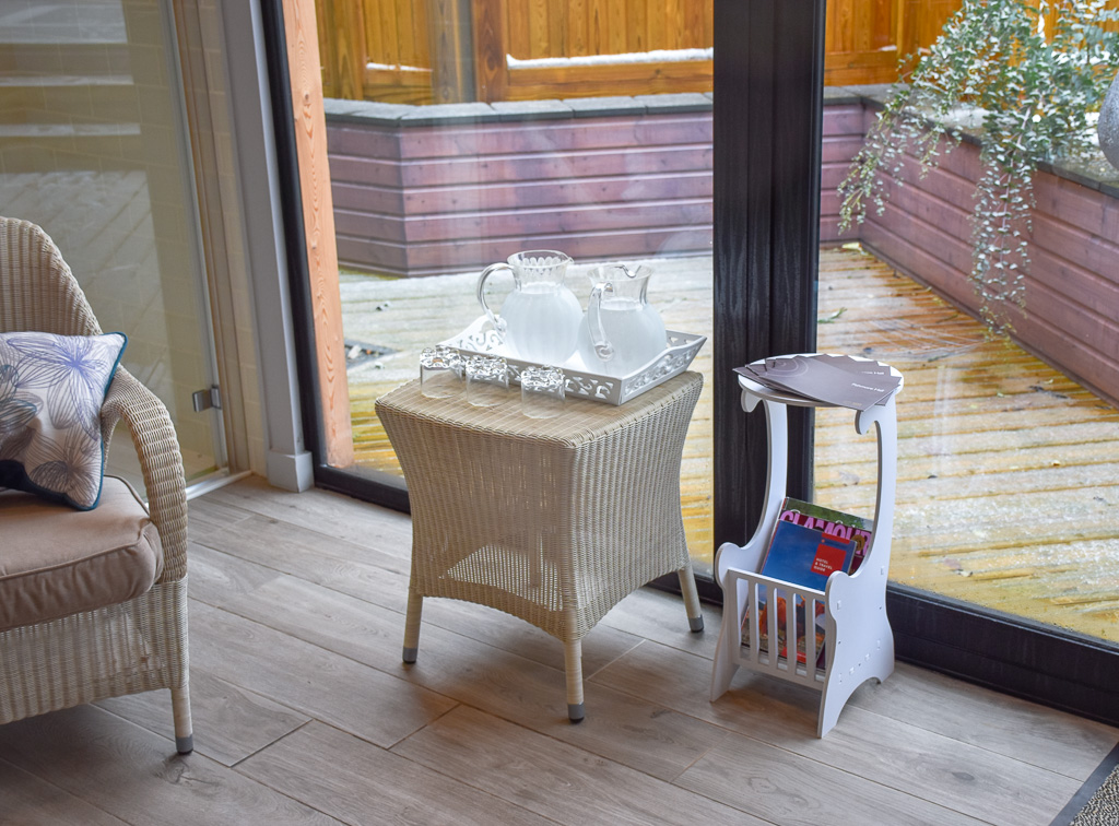 One of my favourite things in the world is spending time in a hot tub. If it’s warm, bubbly and accompanied by Champagne – nothing else matters. Step out onto the patio of this spa and a huge wooden hot tub awaits and has the most magnificent views. Lush green fields await and snowy topped hills in the background. The Champagne was rather delicious too.