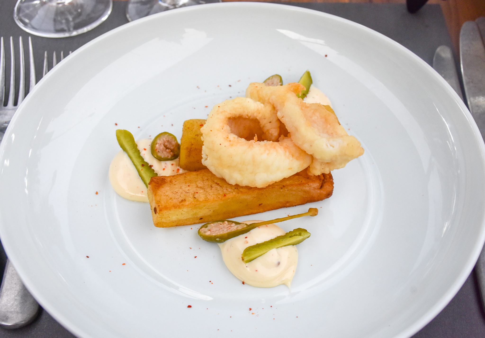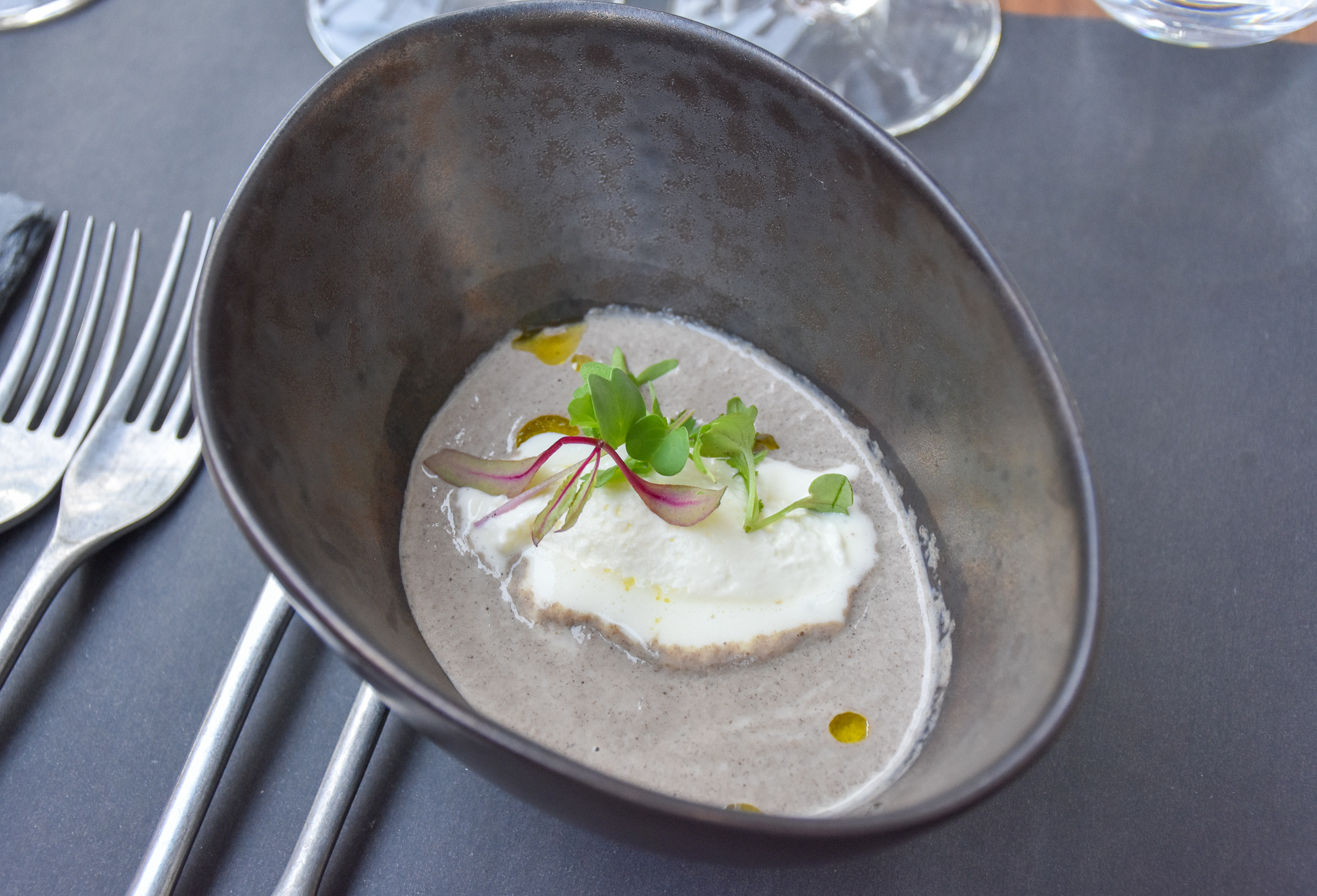 I think my favourite dish from our six course tasting menu was actually one of the most simplest. A rich and thick mushroom soup topped with decadent truffle cream. The soup had such a great consistency to it, a good kick of garlic and a nice earthiness which went great with our first wine of many.