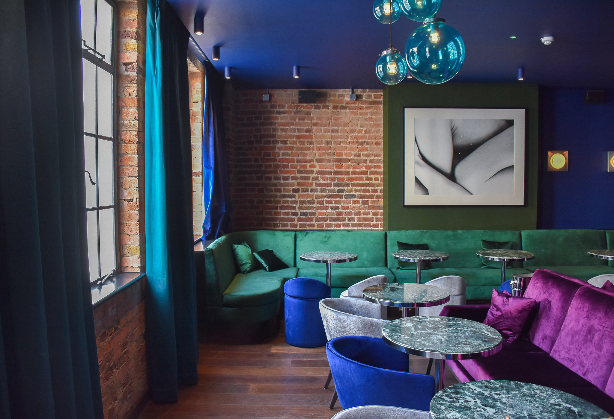 The bar, also known as the Emerald Room is a place of beauty. Exposed brickwork, marble tables, velvet seats and pillows, rich tones of blues and purples, emerald-green sofas and natural light pouring in from the big windows. It’s the sort of place which if you have time, you’ll want to start your lunch or dinner in.