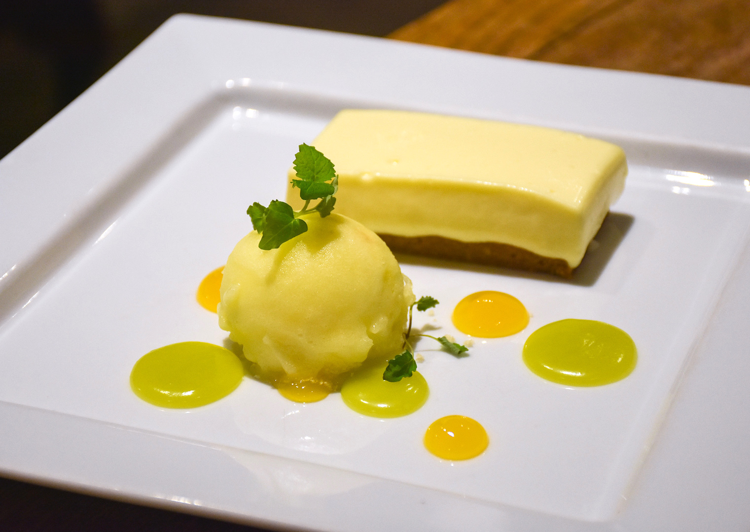 We finished up our dinner on the most delicious vanilla & mascarpone mousse cheesecake with dollops of mandarin jelly, lime curd, ginger biscuit and a scoop of mandarin sorbet. Cheesecake really is one of my absolute favourite desserts and this was incredibly satisfying.
