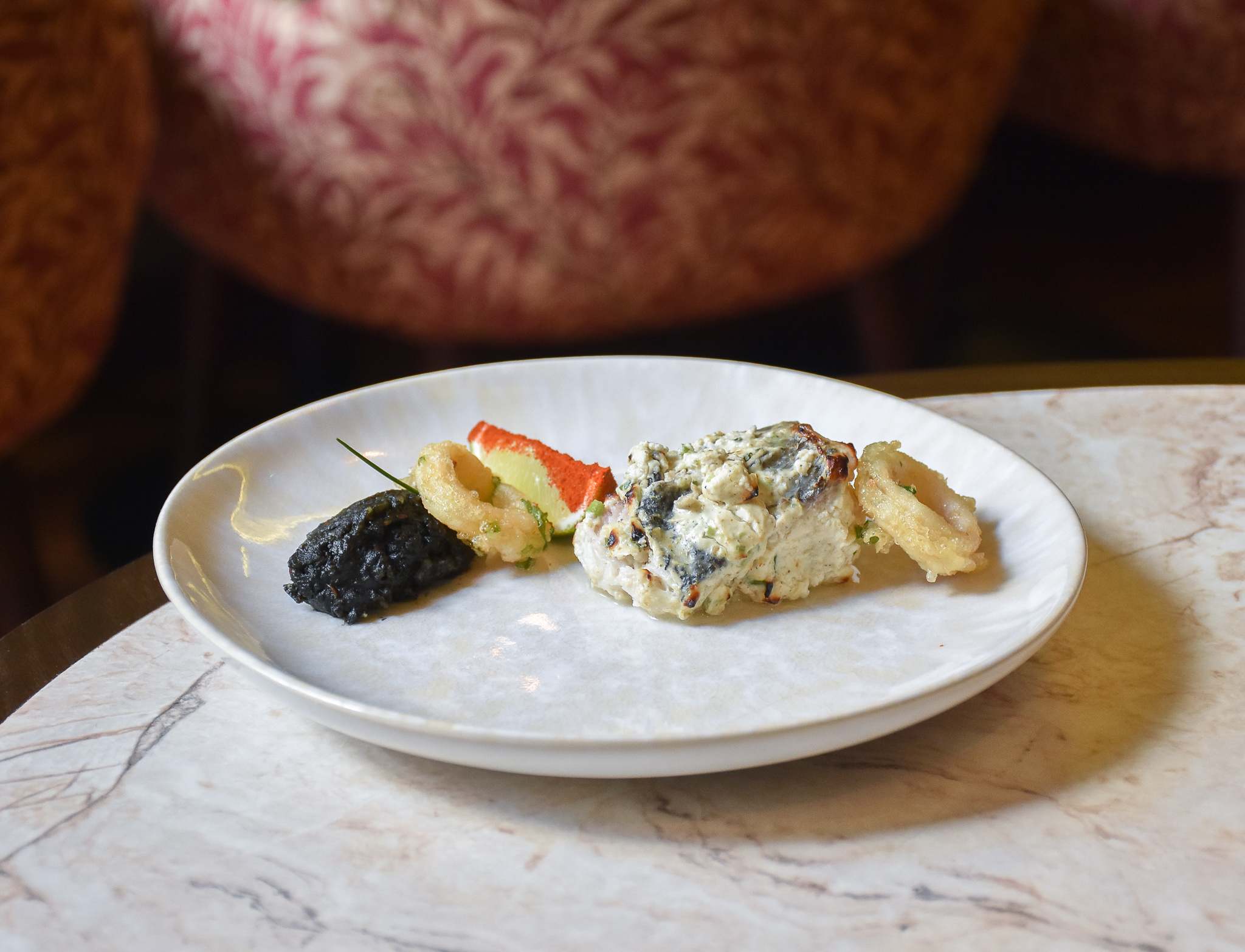 I had far too many dishes to pick my favourite, but one of them was this stone bass with squid. It was probably the most unassuming to look at, but it gave the most in terms of flavour and cooking. The fish, marinated in some sort of yoghurt, herb and spice mixture (almost like a tikka paste) was served alongside rings of crispy squid and a spoonful of squid ink rice. Such an exquisite dish which I ate so slowly to make sure it lasted as long as possible.
