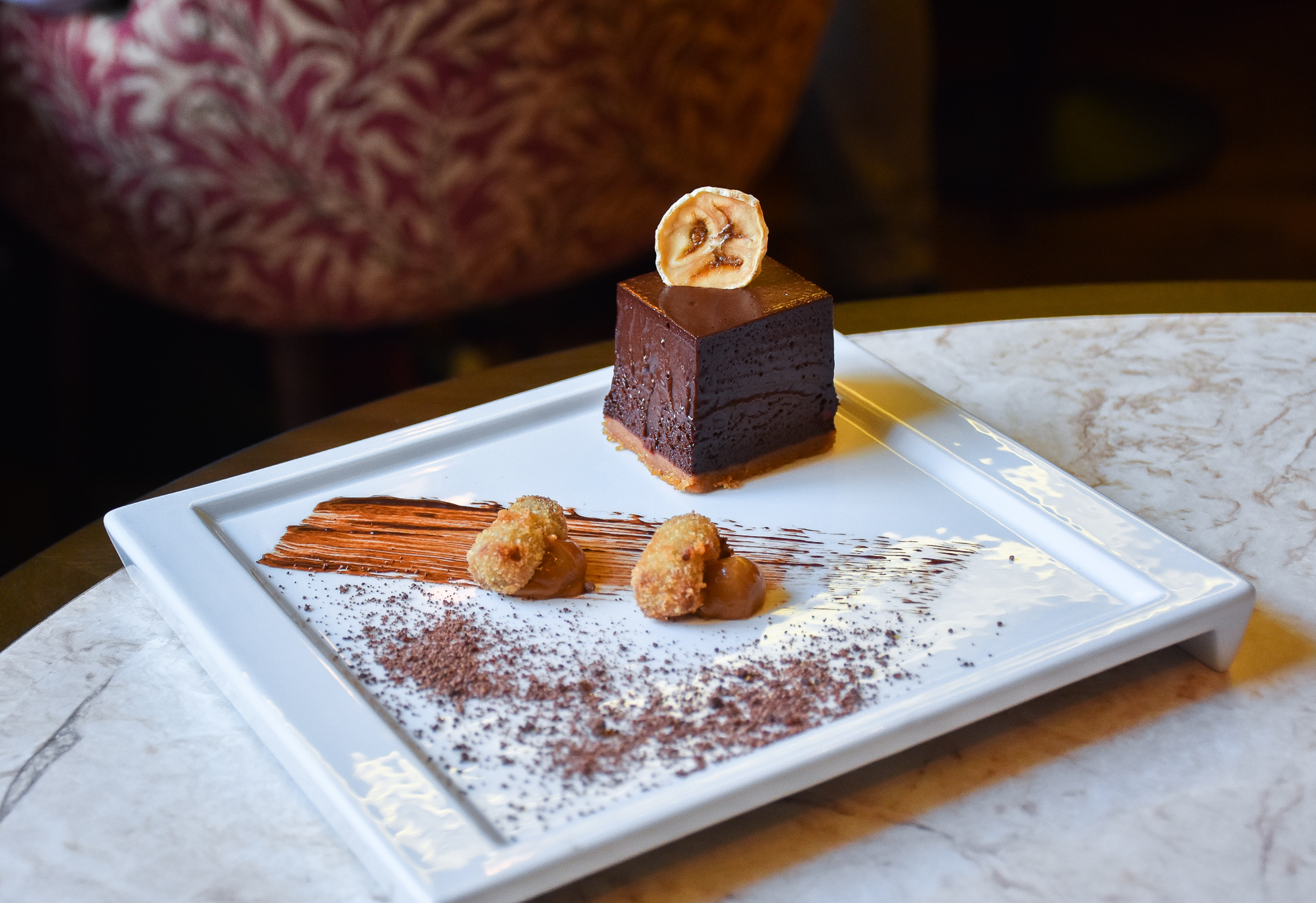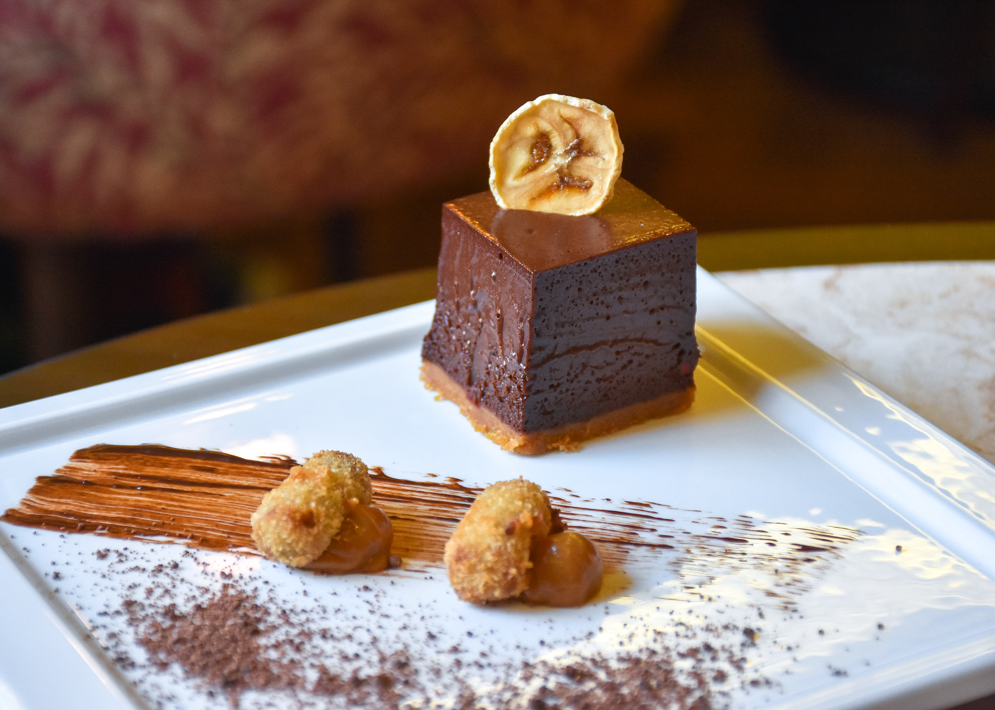 Desserts, well we had many of them, some even in liquid form – but my favourite was the banana and honey Valrhona chocolate chilli mousse with deep fried banana nuggets and caramel sauce.