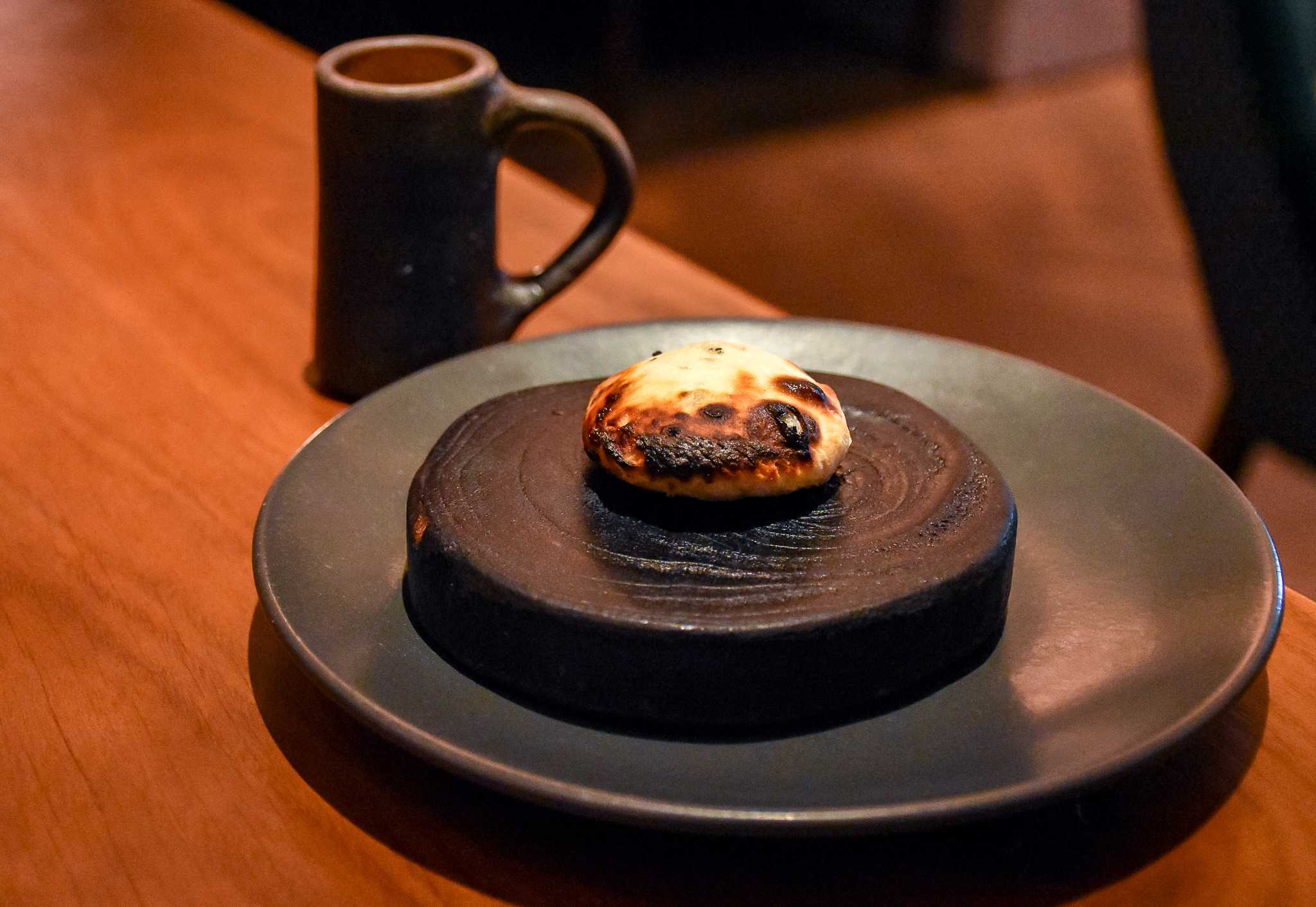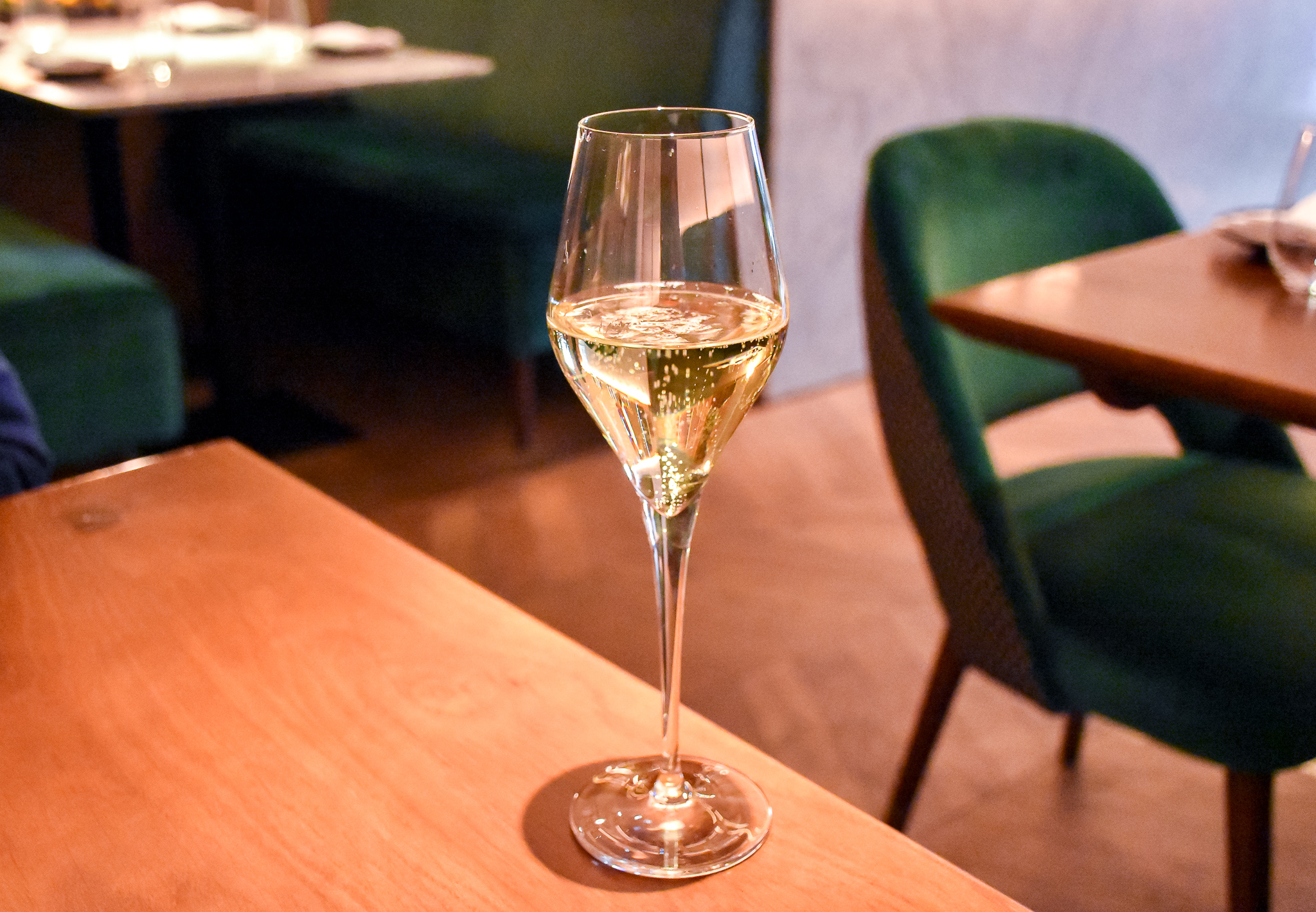 As we settled in, we started with a buttery glass of chilled Champagne and a small amuse bouche which was a naan, stuffed with blue cheese. Rich, oozing and delicious. This really got the palate excited and went very well with that Champagne, cutting through the oil.