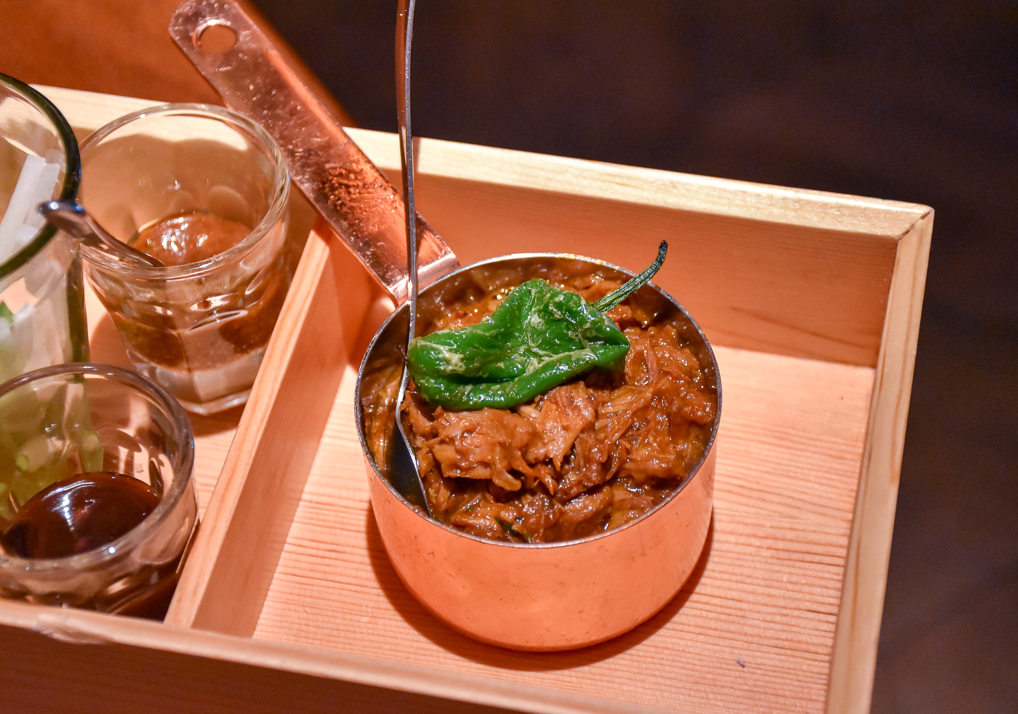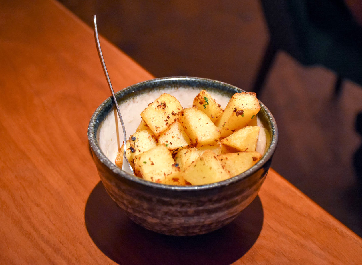 Make sure you order some sides too, especially the garlic pepper potatoes and wild mushroom kulcha with truffle oil from the Indian Accent bread bar. The potatoes were very good, but the kulcha was a revelation. I’ve not had one quite so rich and oozing before. Absolutely delicious.