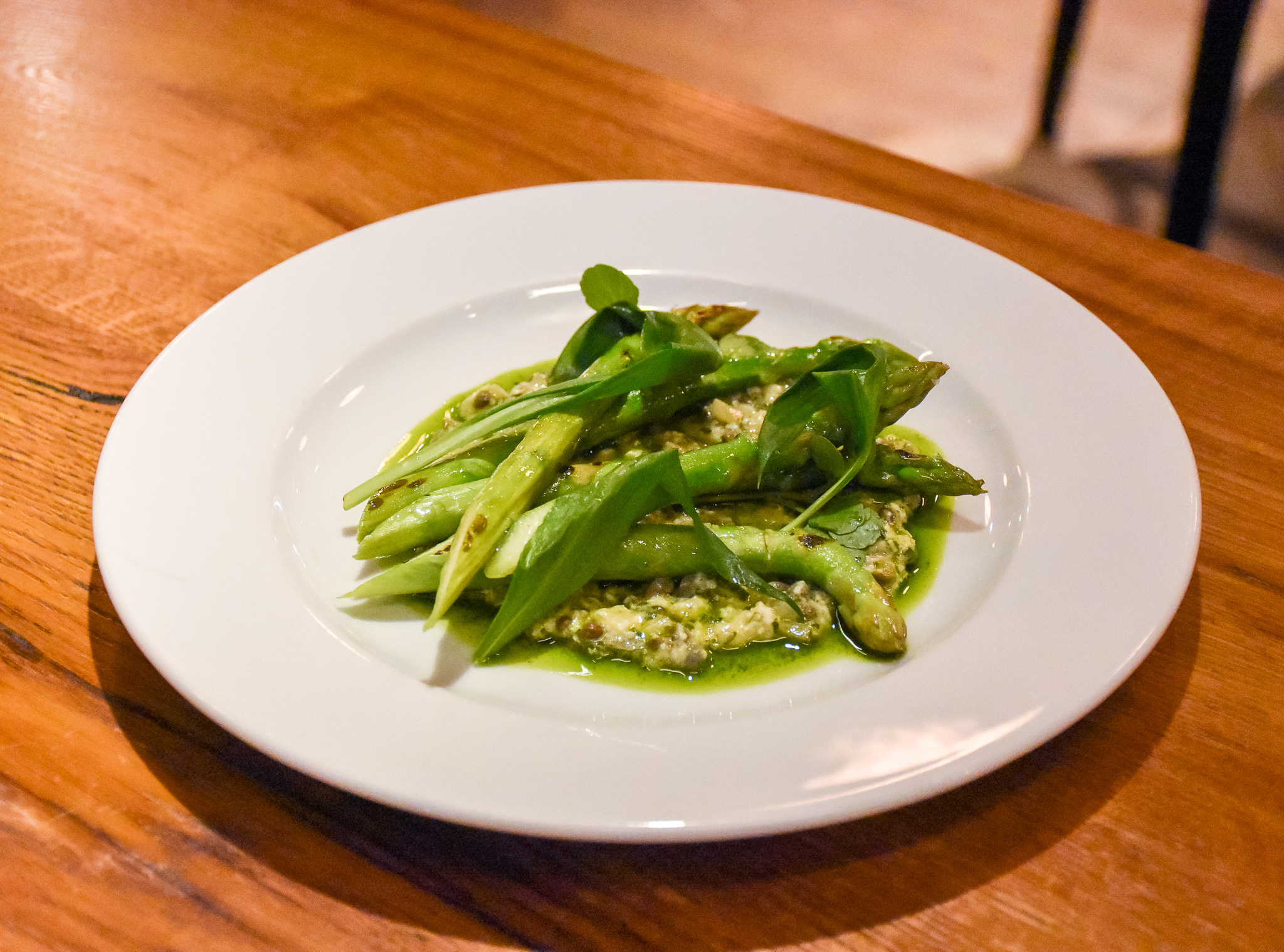 After inhaling a deliciously spicy Bloody Mary, our first starter arrived. Asparagus with sauce gribiche and truffle. The smell when it arrived was enticing, the flavours precise and the asparagus was cooked well. A lovely start to our meal, both this dish and our drink at the bar.