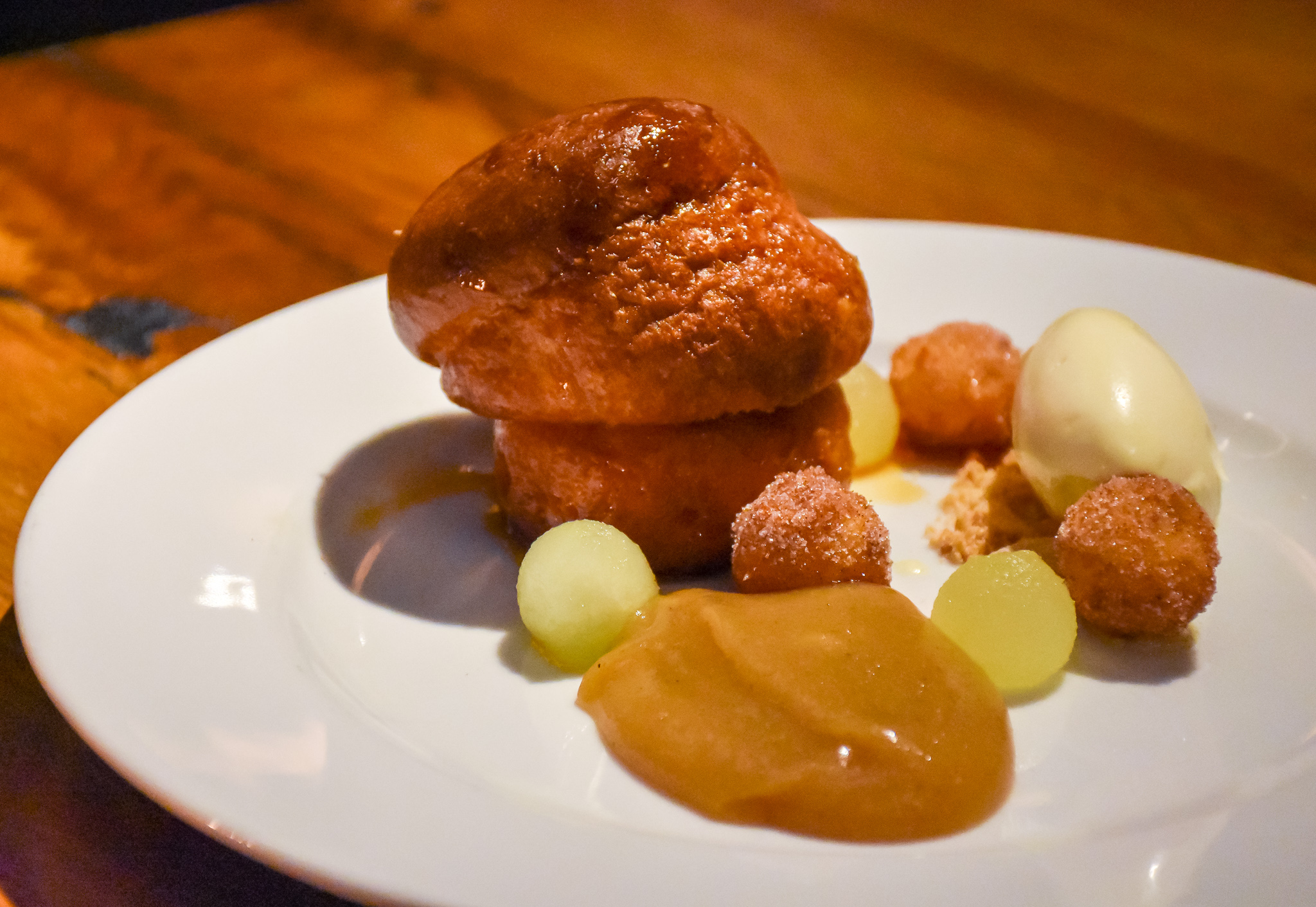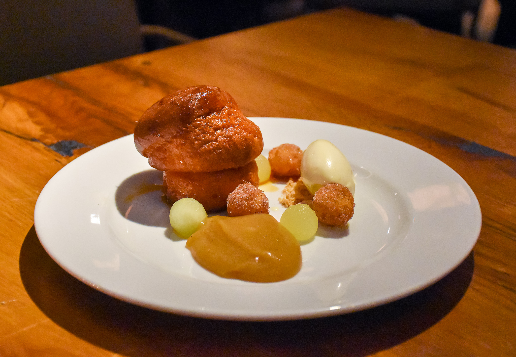 I was expecting a little more from our other dessert of calvados baba if being quite honest. The baba needed more calvados as it was just a touch dry, the apple fritters would have been better as mini doughnuts (with a spiced apple filling), but the clotted cream pulled everything together nicely. Not a terrible dessert by any means, but they could do so much more with it.