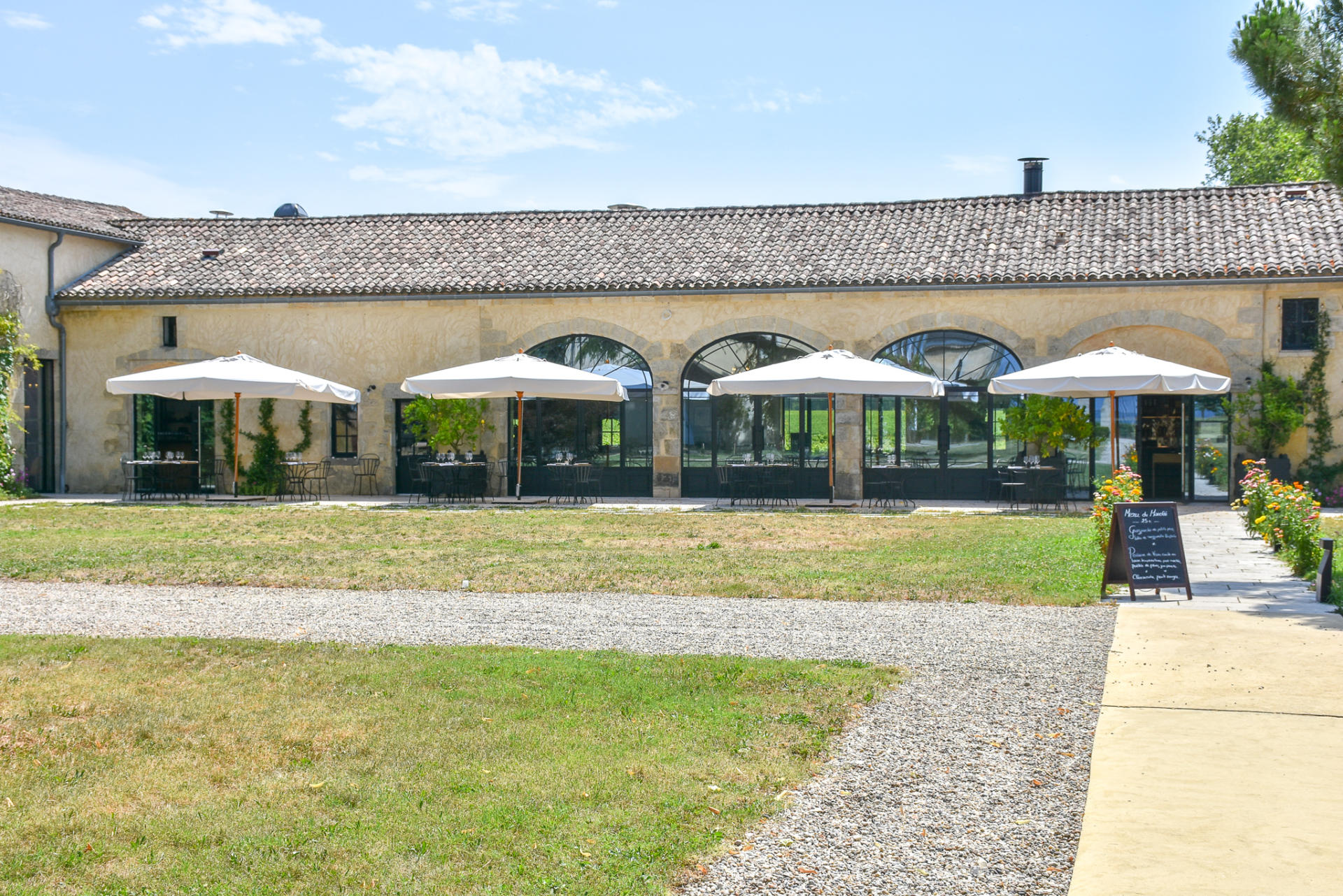 La Chapelle de Guiraud is located on the Château Guiraud wine estate (classified as the first Sauternes grand cru in 1855) and the approach to this magnificent property leaves you gasping at first sight. It’s simply stunning. The sun was shining, the strong smell of perfumed flora filled the air and the sheer utter peace and tranquility of it all made for a little slice of heaven.
