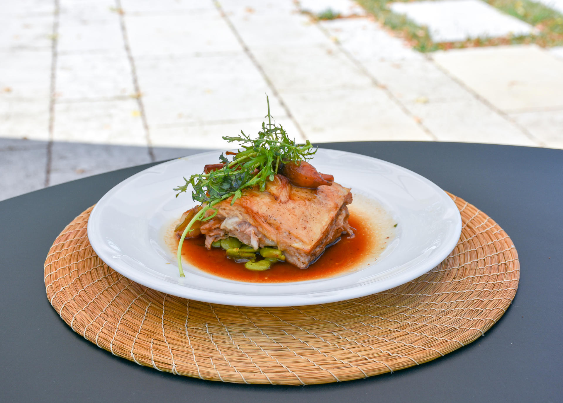 For our main, a very rustic looking but beautifully executed piece of veal, so tender it was falling to pieces at just the sight of my fork. Served with a lovely rich herb scented gravy and vegetables from the Chateau/restaurants grounds. It’s so rural and rustic around the vineyards of Sauternes that dish seemed so fitting.